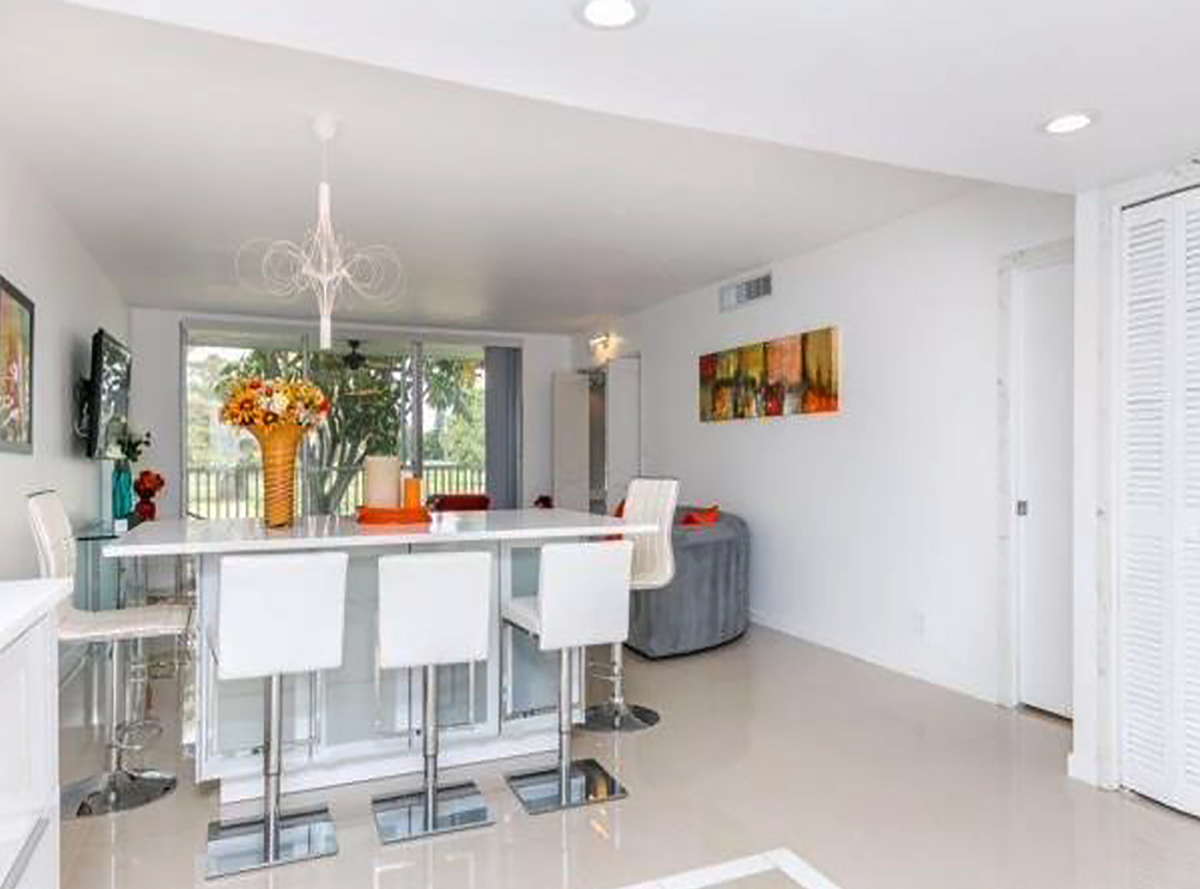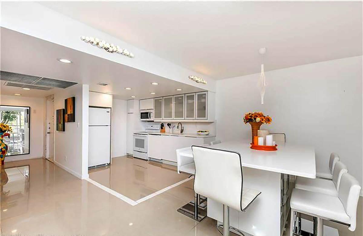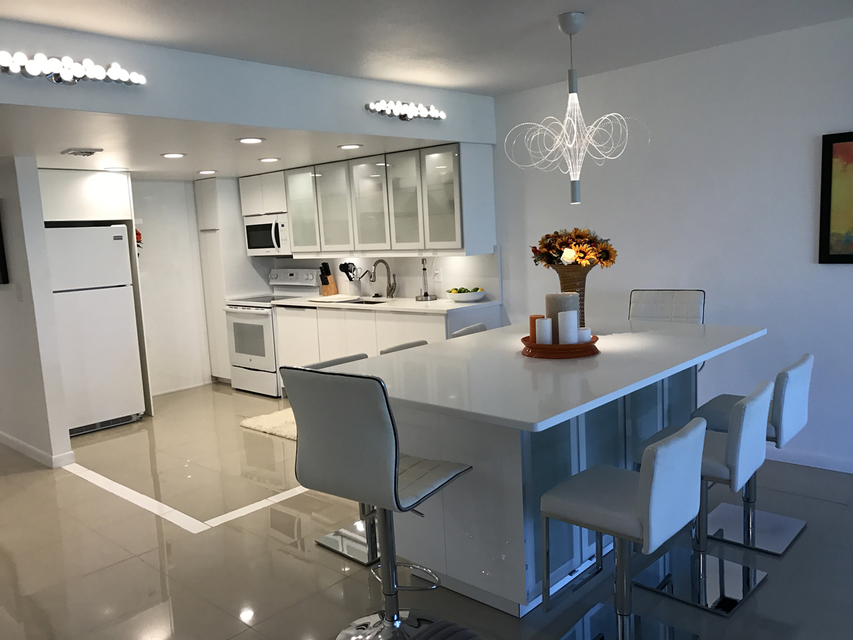 Greek “Santorini – white” design. Gut renovated this 3 bedroom, 2 bathroom condo has over1500sq ft, bright, spacious, sunny space replacing dark fixtures and mirrors with new modern kitchen and bedrooms design for light and airy feeling.